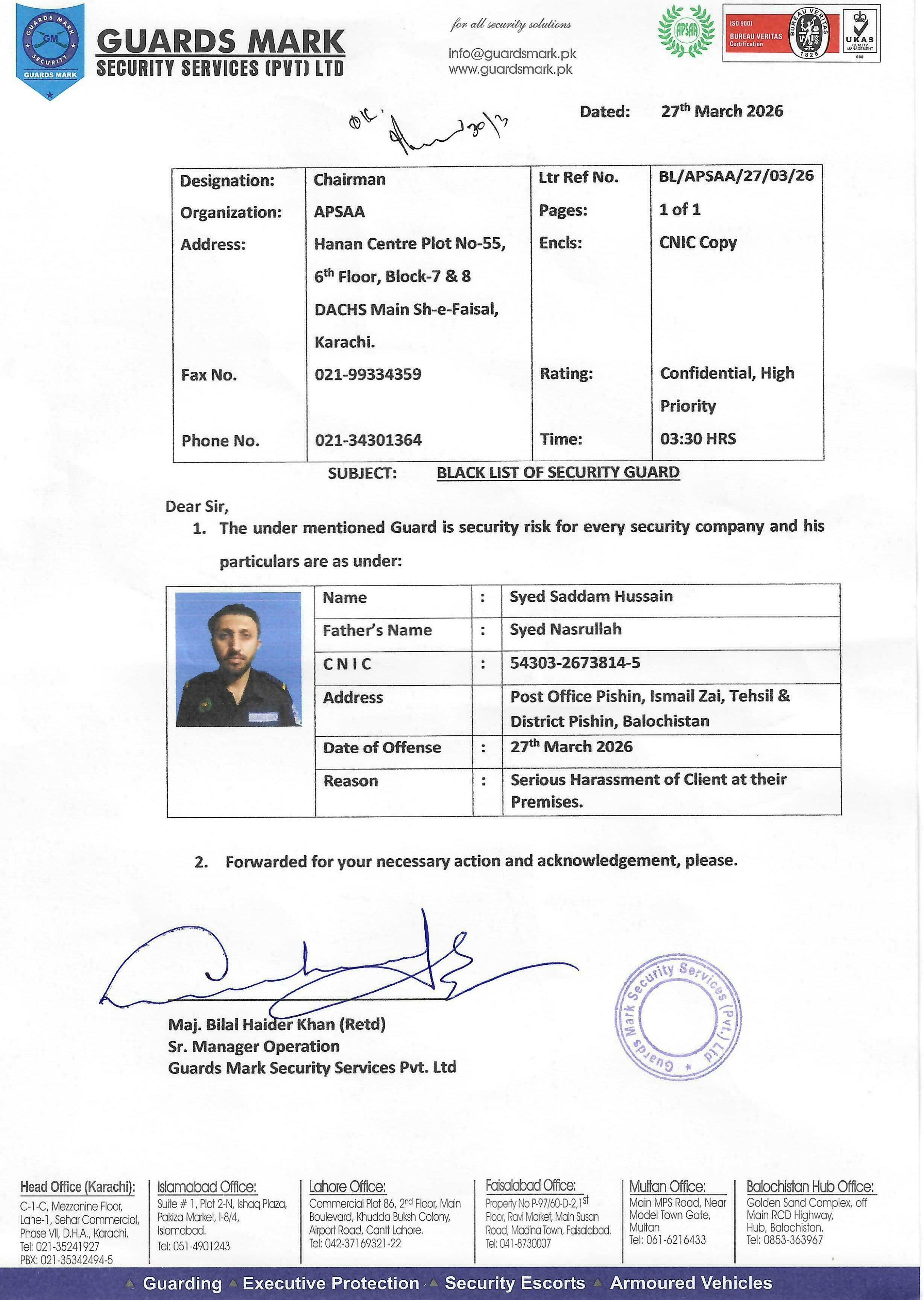 | 07 | Year 2026 | Syed Saddar | Syed Nasrullah | Guards Mark Security Services (Pvt.) Ltd | 5430326738145 | Click Here |