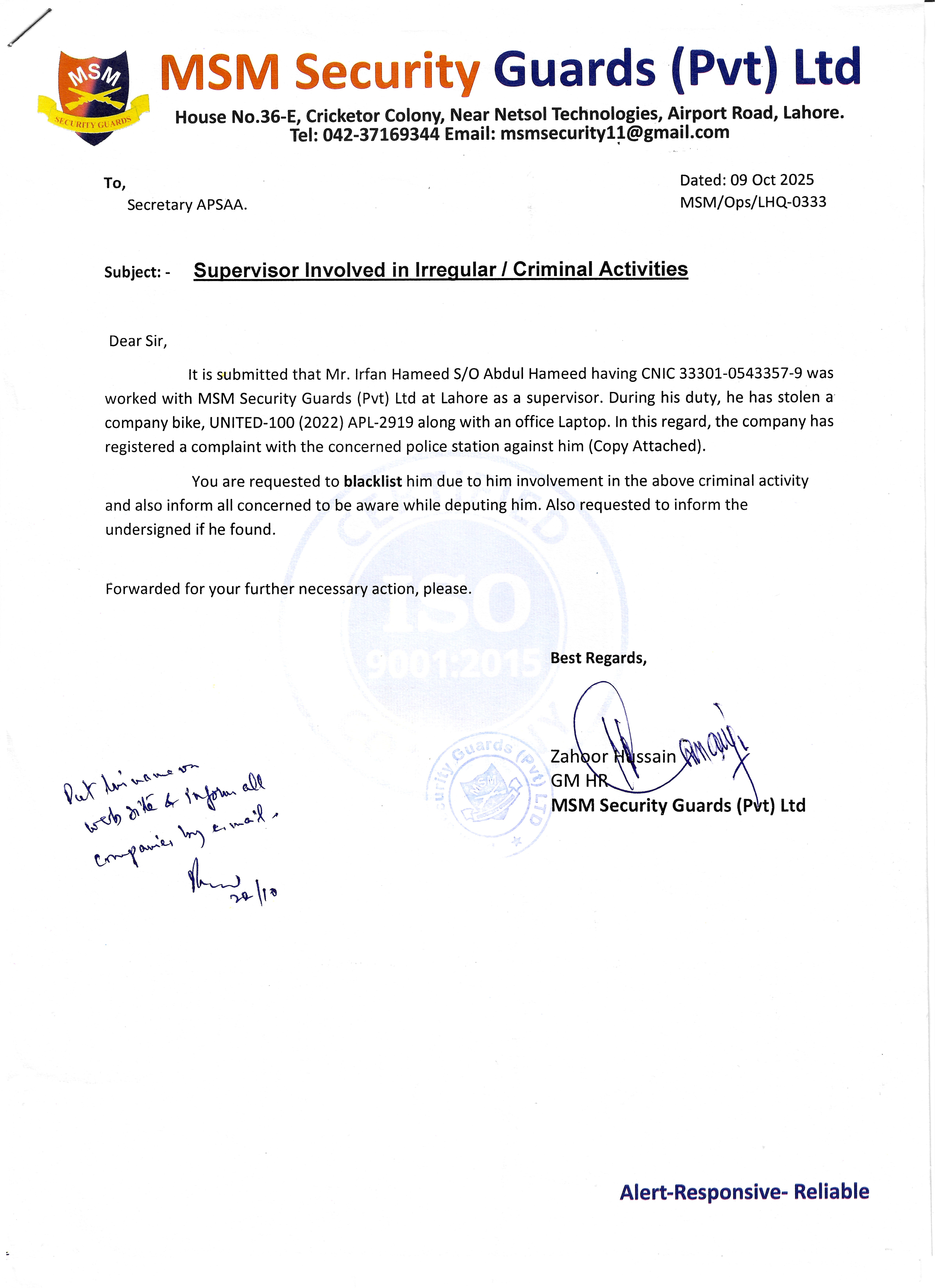 | 31 | Year 2025 | Abdul Ghafoor | Muhammad Rafique | Shaheen Foundation Security Services (Pvt.) Ltd | 35404-6817870-1 | Click Here |