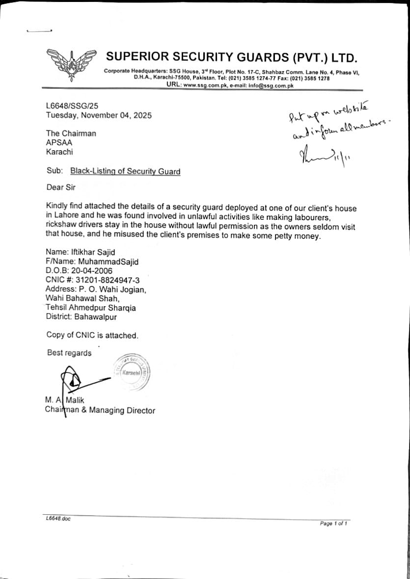 | 17 | Year 2025 | Muhammad Ashraf | Wazeer Khan | Security 2000 (Pvt.) Ltd | 45304-1590072-5 | Click Here |
