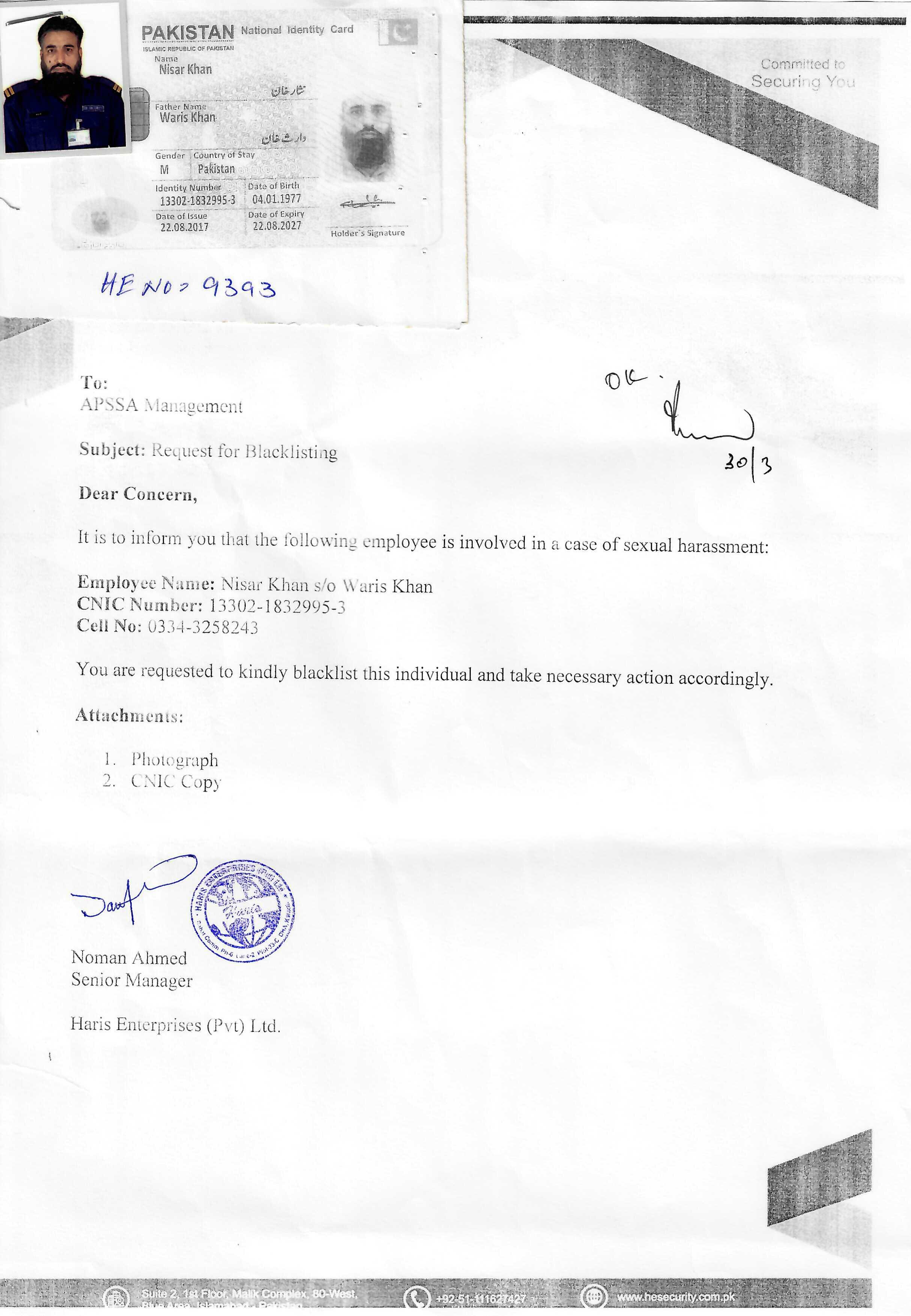 | 38 | Year 2025 | Wafaq Ali | Muhammad Ashraf | Bahria Security Systems and Services (Pvt.) Ltd | 45403-8030167-3 | - |
