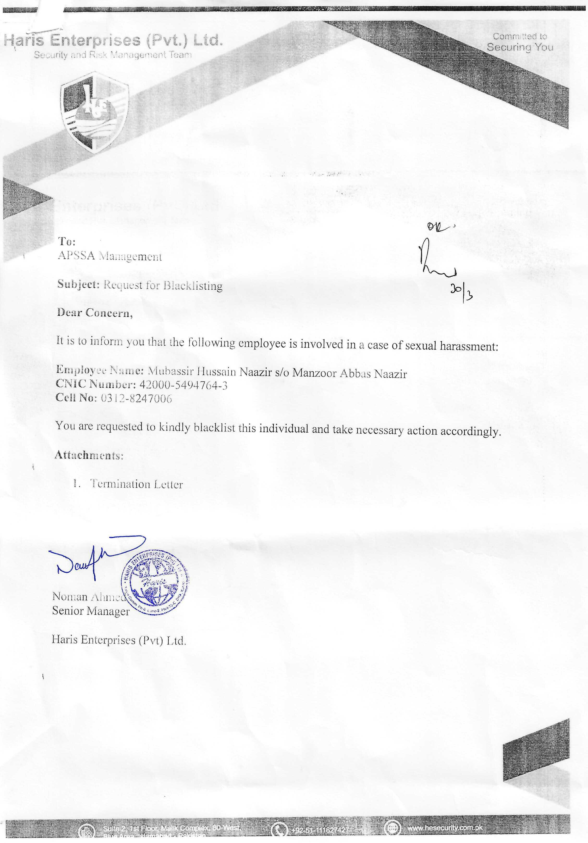 | 22 | Year 2025 | Muddasir Hussain | Munawar Hussain | Security 2000 (Pvt.) Ltd | 42301-3246254-7 | Click Here |