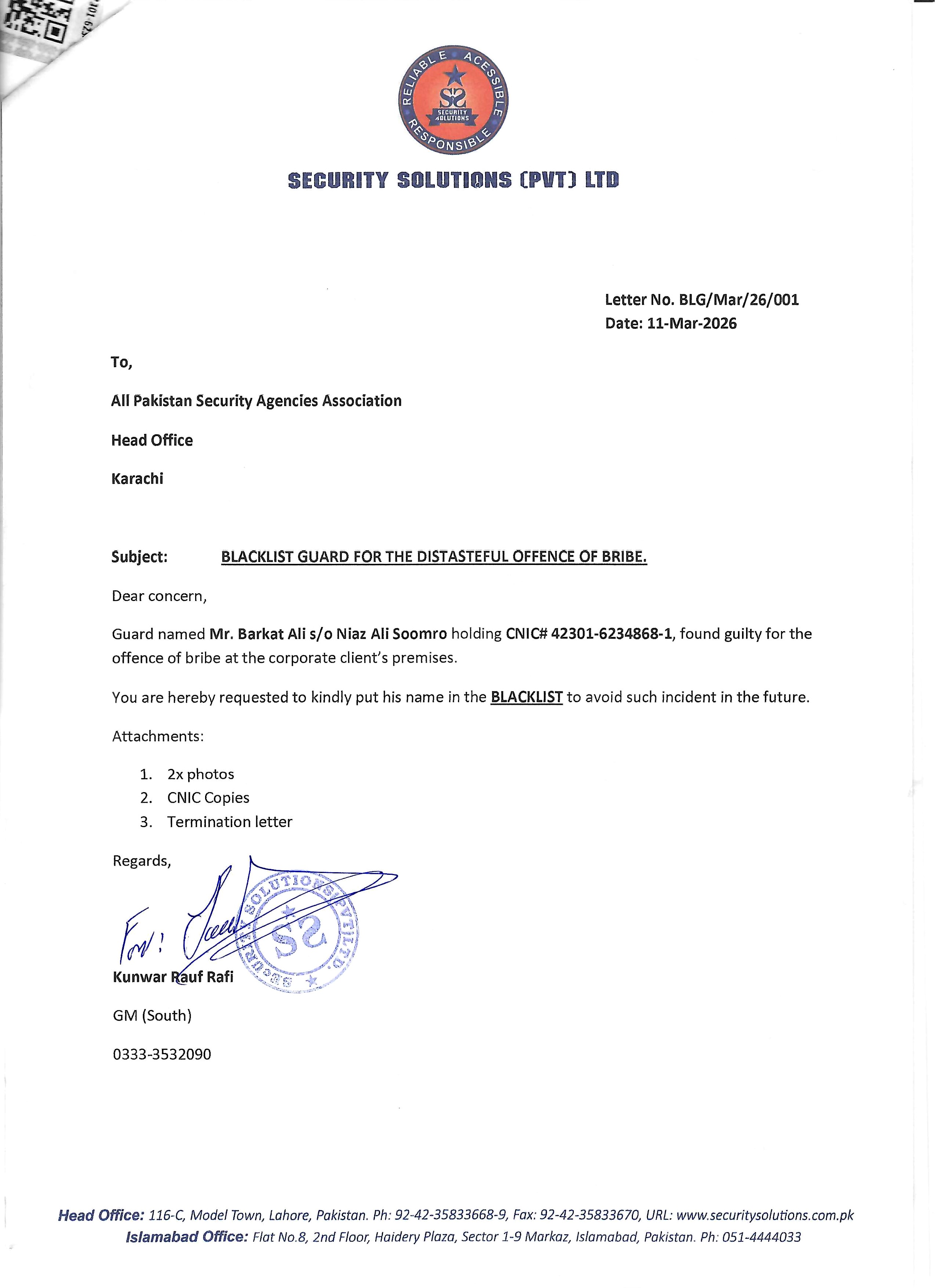 | 07 | Year 2026 | Syed Saddar | Syed Nasrullah | Guards Mark Security Services (Pvt.) Ltd | 5430326738145 | Click Here |